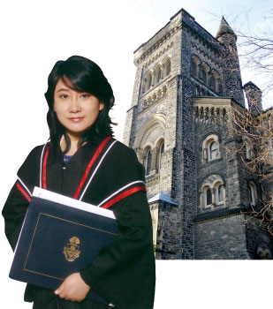 多伦多大学很大,这是我头一次有机会见到校长。终于轮到我了,正是校长和我握手表示祝贺。已经握了几百次手的校长很有些疲惫。他有些无聊的懒洋洋的坐在高背大椅子里,说着那句重复了几百遍的话:“你毕业后要工作吗?”我说“要”,然后告诉他:“我想告诉您,我是一个残疾人。在中共对法轮功的迫害中致残。我非常珍惜在多大得到的一切。”校长听到第一句话,身子一下子坐直了;听到第二句话,往前一欠身,差点从椅子里跳起来;听完第三句话,他欣慰的向我表示衷心祝福。