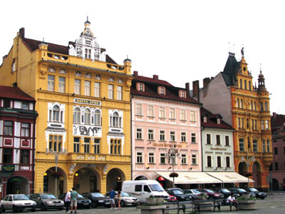普杰米司拉广场(Namesti Premysla OtakaraⅡ)长、宽各一百三十三公尺,是捷克最大的广场。四周尽是美丽的传统建筑,三、四层小楼高,镶叠鲜艳的红屋瓦,漆着各色柔和色彩屋墙,每栋建筑都有自己的特色。