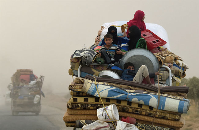 原本阿薩德政權倒臺指日可待,但因有俄羅斯、伊朗及中共支持而苟延殘喘至今,還鬧出ISIS。圖為敘國人民逃難。(AFP)