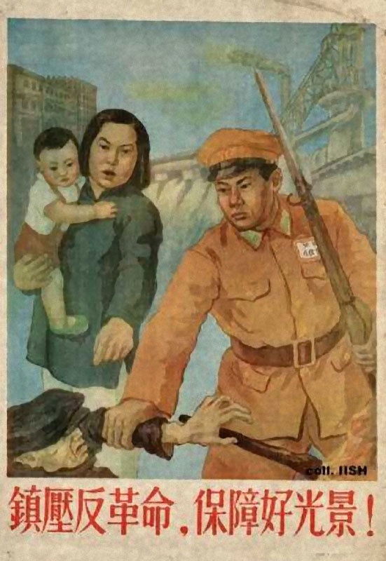 金庸的父親查樞卿在1950年初的「鎮反」運動中遭中共殺害。圖為中共1951年的鎮壓反革命運動海報。(維基百科)