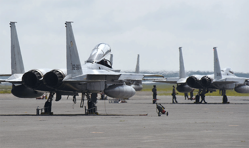 日本自衛隊的主力戰機F-15J完成技術升級,具備掛載AGM-158空對地精準攻擊導彈,成超強的空中殺手。(AFP)