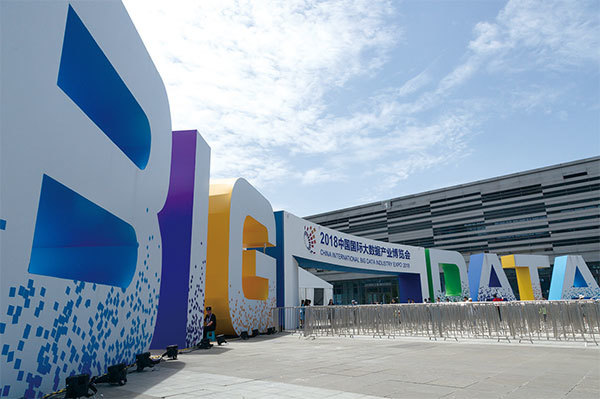分析指最早斷電的湖南缺電,與其大力發展大數據有關。圖為2018年貴陽大數據博覽會入口處。(Jadranko Marjanovic / Xinhua News Agency)
