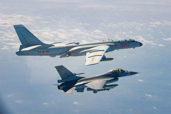 臺灣軍隊有強大戰略預警,共軍在準備武力犯臺階段就會被發現,無法戰略奇襲。圖為2020年2月9日中共軍機(頂部)越過臺海中線,臺灣國軍F-16戰機緊急監控伴飛。(Taiwan's Defence Ministry/AFP)
