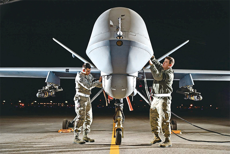 去年11月3日,美國國務院確定了向臺灣出售四架MQ-9B無人機的軍售案。圖為2014年5月15日,美國空軍地勤人員在內華達州的空軍基地準備MQ-9無人機。(美國空軍)