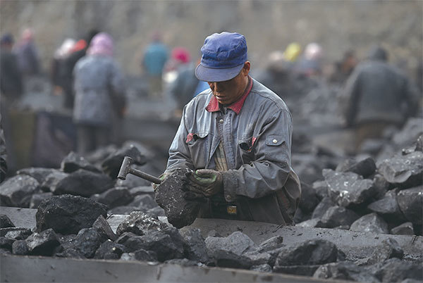 中國大陸的能源特徵是「富煤、貧油、少氣」,煤的碳排放量是所有化石能源裡最高的,致使中國單位能源的碳排放強度是世界平均水平的1.3倍。圖為2015年,一名工人在分揀煤炭。(Greg Baker / AFP)