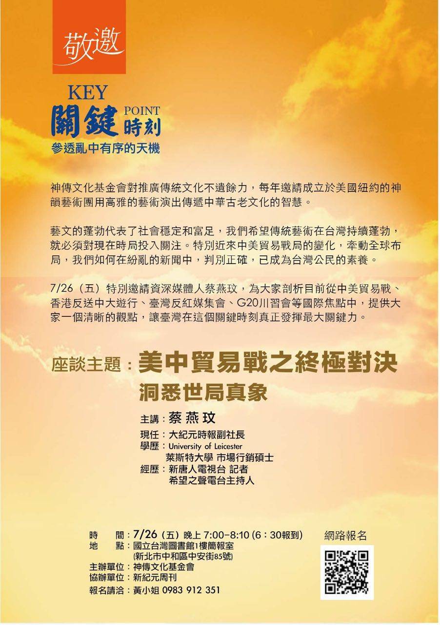 閱讀更多活動快訊》美中貿易戰之終極對決洞悉世局真象 講座圓滿落幕香港反送中事件,隨港府壓制手段不斷升溫,香港民眾自六月起,連續不斷的每周遊...