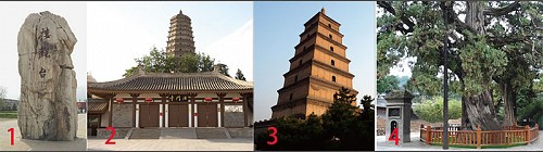 陝西是中國神傳文化的核心省分,(由左至右)周至縣的樓觀台、扶風縣的法門寺、西安的大雁塔、軒轅黃帝的陵園等,見證著中國儒釋道文化。(新紀元合成圖)